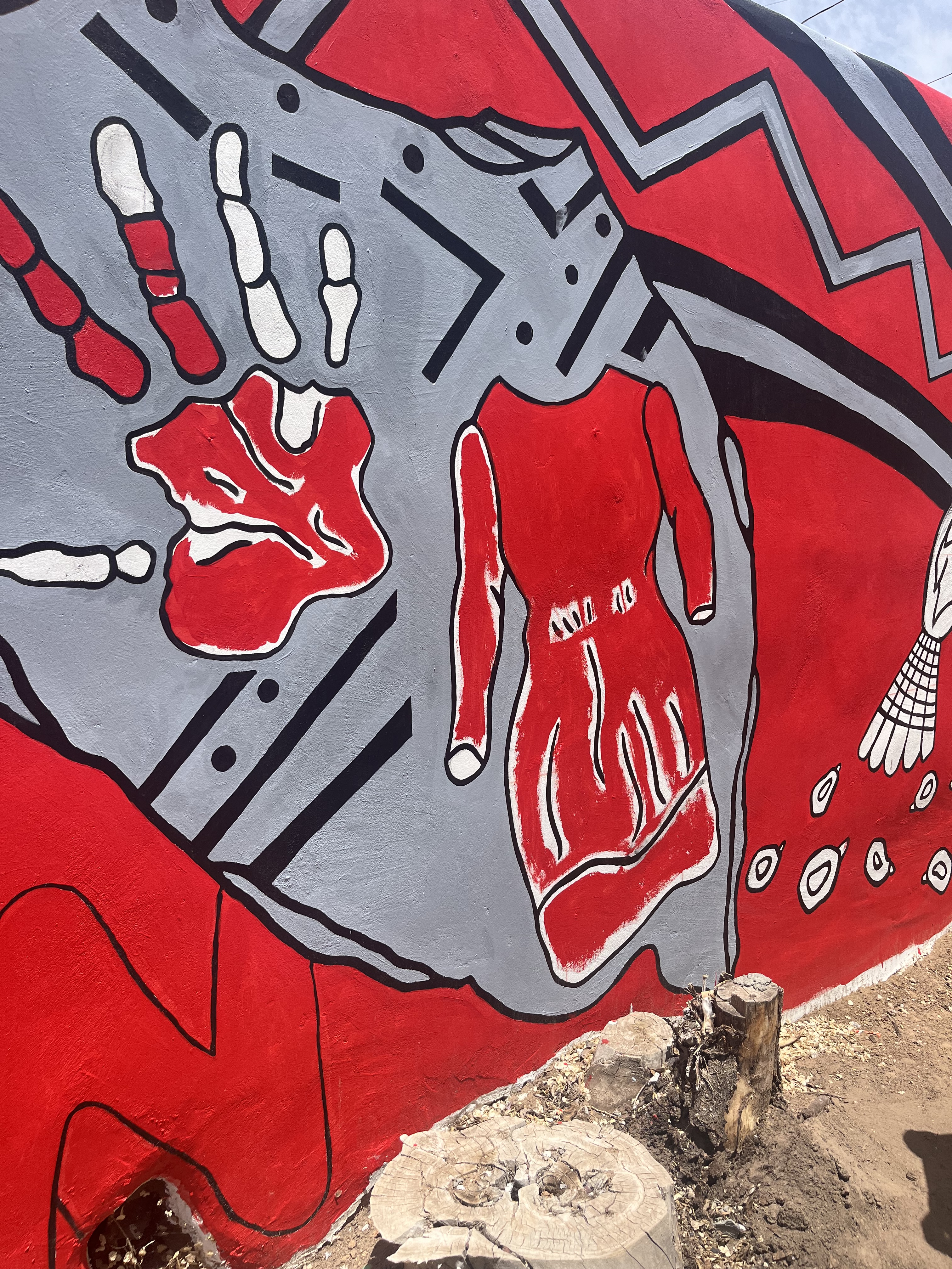 This mural is based on the concept that the keeper and progenitor of stories in a culture is pivotal in remembering our history, our experiences and making us aware of our present and the coming future. The Storyteller aligns us with our roots and allows us to grow in knowledge of who we are and who we can be.