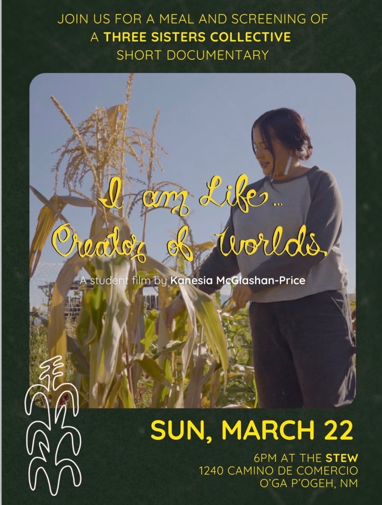 Join us for a meal and screening of a Three Sisters Collective short documentary by IAIA student Kanesia McGlashan-Price!