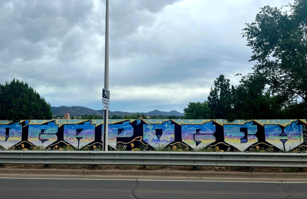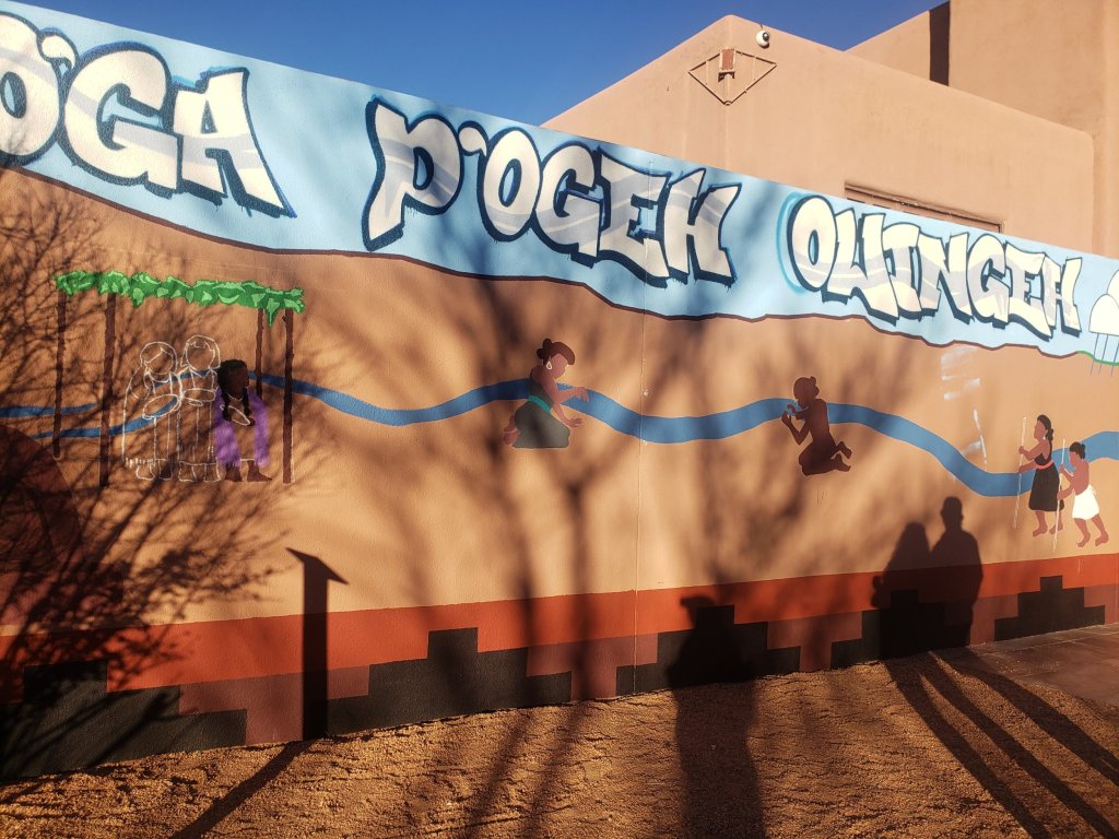 “As Oga Pogeh, Santa Fe and other communities experience extreme gentrification, this is usually accompanied by a change in aesthetics. Over the last several years, we have witnessed cultural erasure in the form of beloved murals by Indigenous and Chicanx artists being removed in favor of a streamlined, industrial aesthetic, i.e. Santa Fe Railyard District. And as you get closer to the downtown plaza area, the less public facing art you will see due to the city’s restrictions on what they deem a historical “Pueblo Revival” architecture.”