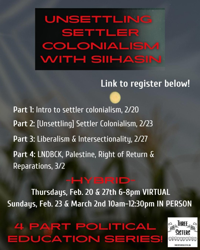 As Indigenous and BIPoC people we recognize our liberation is directly tied to all oppressed people the world over. Our ancestral, genetic, present day memory recognizes that the genocide in Palestine isn’t a singular event, rather a vicious structure that we participate in and benefit from while it continues to invalidate and separate us from out inherent right to live on our homelands free of harm.